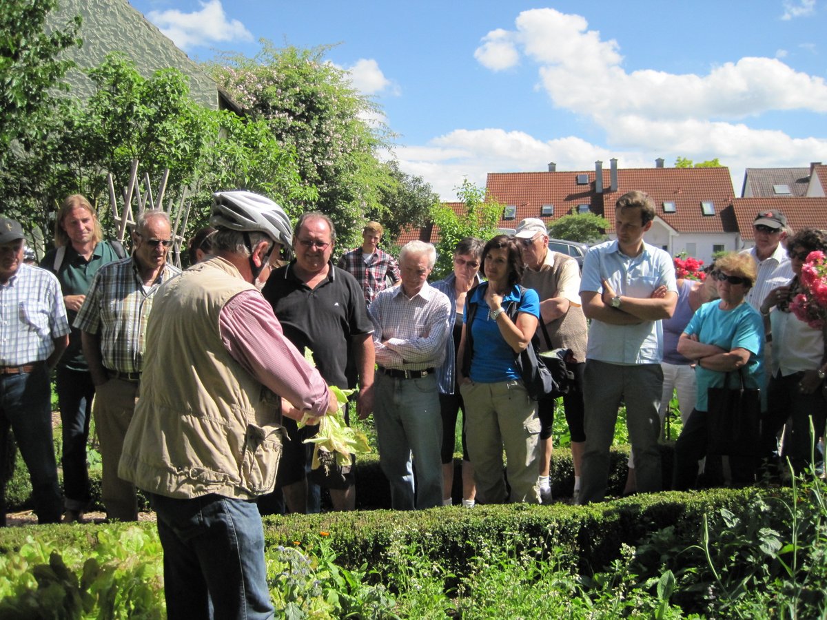 Von dort aus erkundeten wir im Rahmen der BayernTour Natur mit dem hervorragenden Naturkenner Hans Fischer das fränkische Apothekergärtlein mit dem Rad. Viel konnten wir erfahren über den Schwebheimer Kräuteranbau, den Natur- und Artenschutz und die Ökologischen Landschaftsgestaltung. Auch wild wachsende Kräuter am Wegesrand blieben nicht unerwähnt. Zum Abschluss lud Hans Fischer alle Radler zu einem erfrischenden Kräutertee in seinen paradiesischen Garten ein. Zurück in Sennfeld ließen wir die gemeinsame Radtour mit einem "Schlusshock" im Biergarten der Sennfelder NaturFreunde ausklingen.